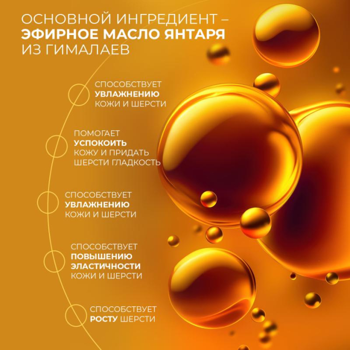 - Эфирное масло янтаря - увлажняет, питает, способствует росту шерсти